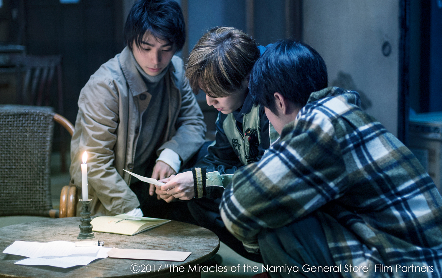 東野圭吾ベストセラーの映画化。3人の幼馴染が忍び込んだ1軒の廃屋は、悩み相談を受けることで知られた雑貨店だった。その郵便口に舞い込んできたのは、過去からの手紙。それをきっかけに、雑貨店は過去と繋がり始める。この手紙は時を越えて届いているのか?彼らは戸惑いながらも返事を書く。次第に明らかになっていく雑貨店の秘密と、彼らと相談者たちとの共通点。そして3人は、自分たち自身と店の繋がりに気づき始める。これまで多くの人を助けてきた雑貨店で、一夜限りの奇跡は起こるのか。